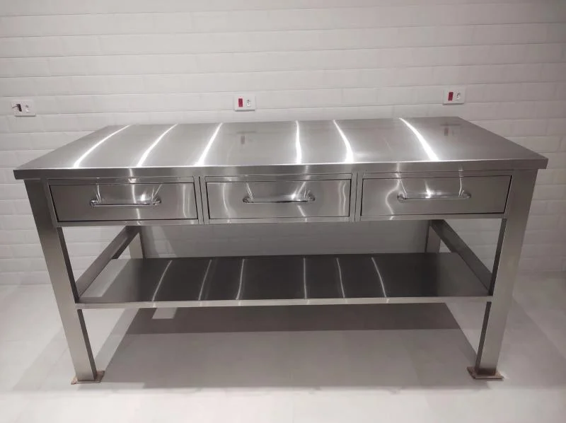 Fabricadas com material resistente e durável, as bancadas de inox proporcionam uma superfície higiênica e fácil de limpar, ideal para ambientes que necessitam de padrões rigorosos de limpeza e assepsia.